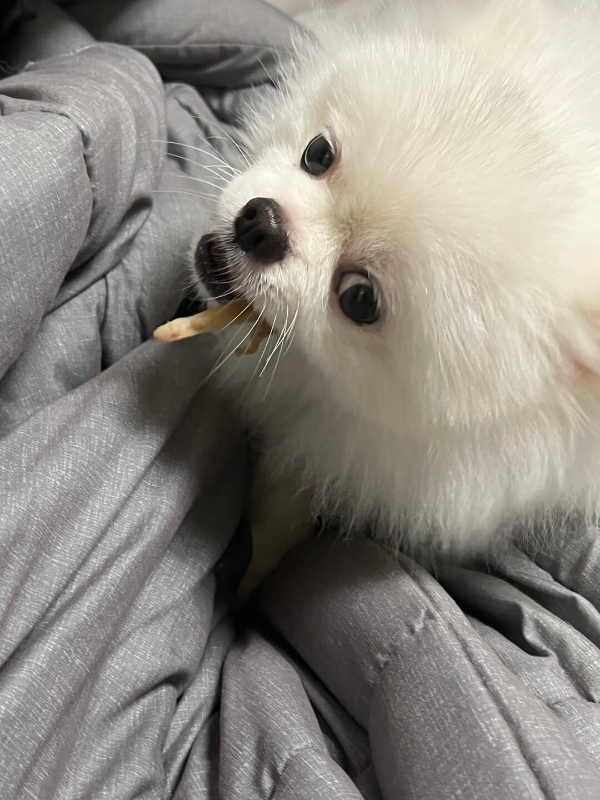 9시간 동안 간식이 완성되길 기다린 강아지에게 간식을 주었습니다. 역시 아주 잘 먹습니다. 소형견 기준 하루에 1개~2개 정도만 급여해주는 것이 좋습니다. 다음에는 닭근위를 이용한 간식 만드는 법을 소개해드리겠습니다.