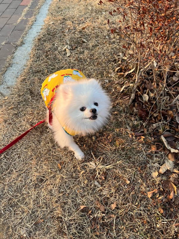 꾸마는 산책을 나갈 거 같은 기미가 보이면 짖기 때문에 빠른 산책 준비가 필수입니다. 이 옷의 경우 하네스를 채우지 않고 리드줄만 연결하면 되기 때문에 아주 빠른 산책 준비가 가능합니다. 저번에 구매한 옷은 찍찍이라 산책 시 옷이 벗겨질까 봐 불안했는데 이 옷은 버클이라 아주 튼튼합니다. 색깔도 노란색이라 밤에도 눈에 잘 띕니다. 적당한 가격대의 강아지 패딩을 찾고 있는 분들께 추천드리며 글을 마치겠습니다.