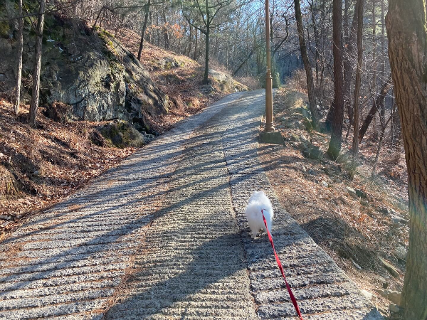 아주 가끔 산으로 산책을 갑니다. 산 산책의 경우 내려올 때는 꾸마를 안고 내려와야 하기 때문에 선호하는 방법은 아닙니다.